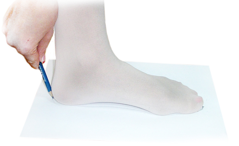Для снятия мерки нужно поставить ногу на лист бумаги. Обводим стопу карандашом примерно так, как показано на Рис.1, Рис.2.